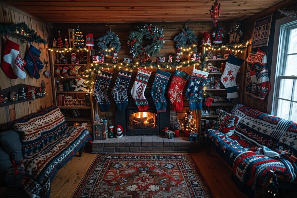 Confectionnez ou achetez des bottes de Noël en tricot. Personnalisez-les avec des initiales brodées ou des petits pompons colorés récupérés de vos anciens pulls rigolos. Suspendez-les près de la cheminée ou sous le sapin pour accentuer l’ambiance chaleureuse.
